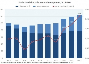 Ecolatina recordó que “en 2017, los préstamos al sector privado crecieron más de 20% interanual en términos reales”, marcados por una suba del 50% en los créditos hipotecarios y del 65% en los préstamos en dólares a las empresas, también ambos deflactados.