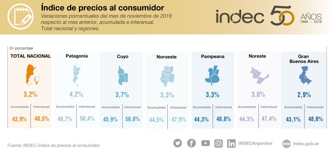 En el NOA, la inflación fue del 3,3%, o un 44,5% acumulada y un 47,9% interanual.