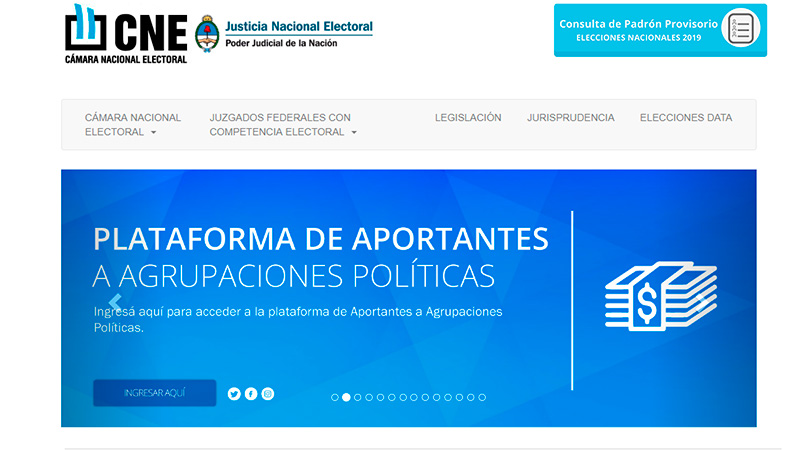 La Cámara Nacional Electoral (CNE) anunció hoy la apertura de un sitio web en el que particulares y personas jurídicas podrán registrar los aportes que realicen a las agrupaciones políticas, tanto para la campaña electoral para las PASO y las generales de octubre, como para su desenvolvimiento institucional.