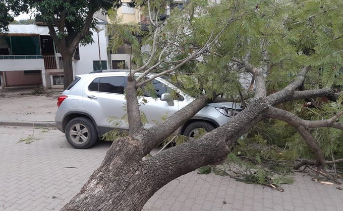 En la ciudad de Rosario se registraron al menos 20 árboles caídos, voladura de chapas, postes y columnas por las ráfagas de hasta 84 kilómetros por hora, precisó Defensa Civil, que afirmó que «no hubo heridos».
