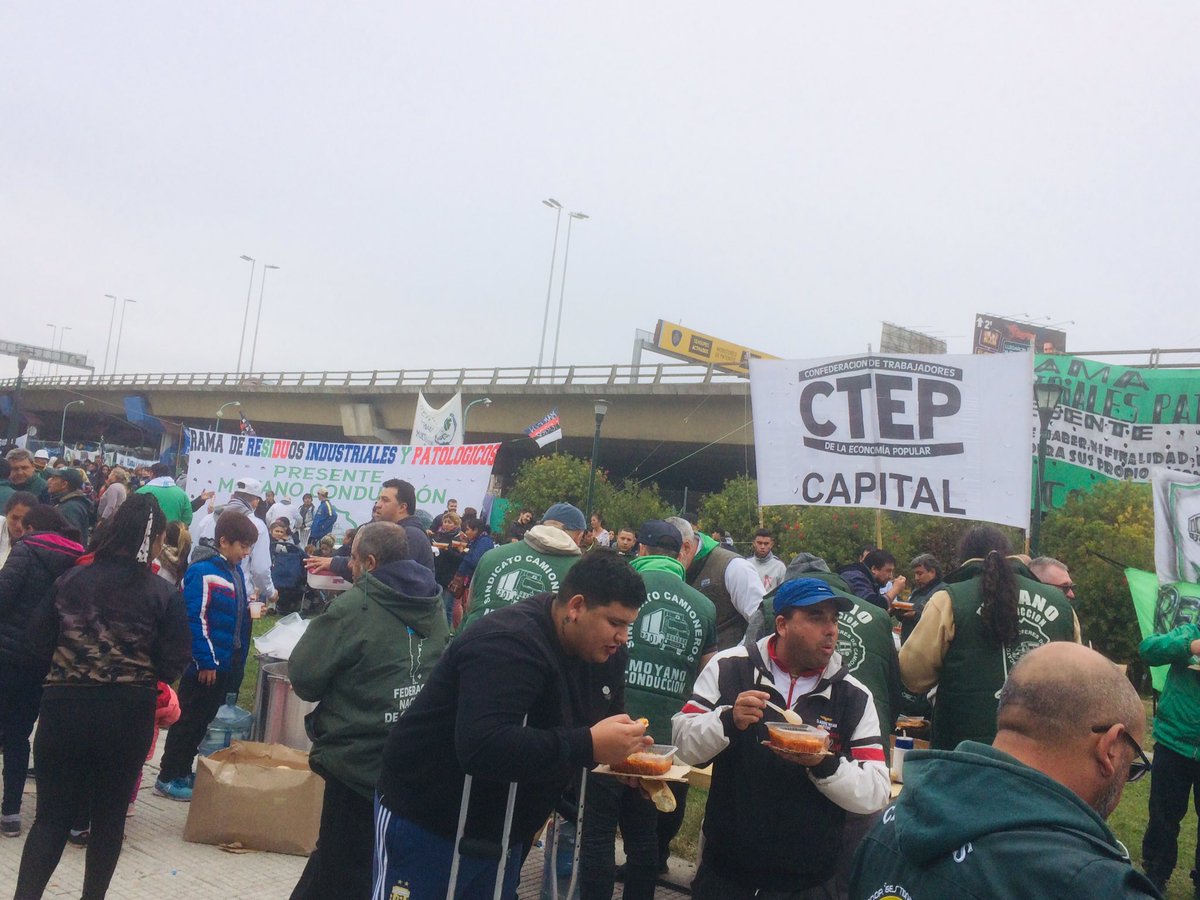 Sin embargo, el líder de la CTEP, Juan Grabois remarcó en declaraciones formuladas a la prensa durante el reclamo que «esta protesta no interrumpe el tránsito» y que estaban «dando de comer».