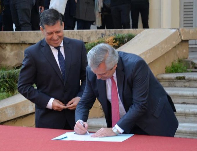 El precandidato presidencial del Frente de Todos, Alberto Fernández, firmó hoy una serie de actas compromiso con una docena de gobernadores del PJ, mandatarios electos y postulantes provinciales, para realizar obras y revisar cuestiones si gana las elecciones nacionales.