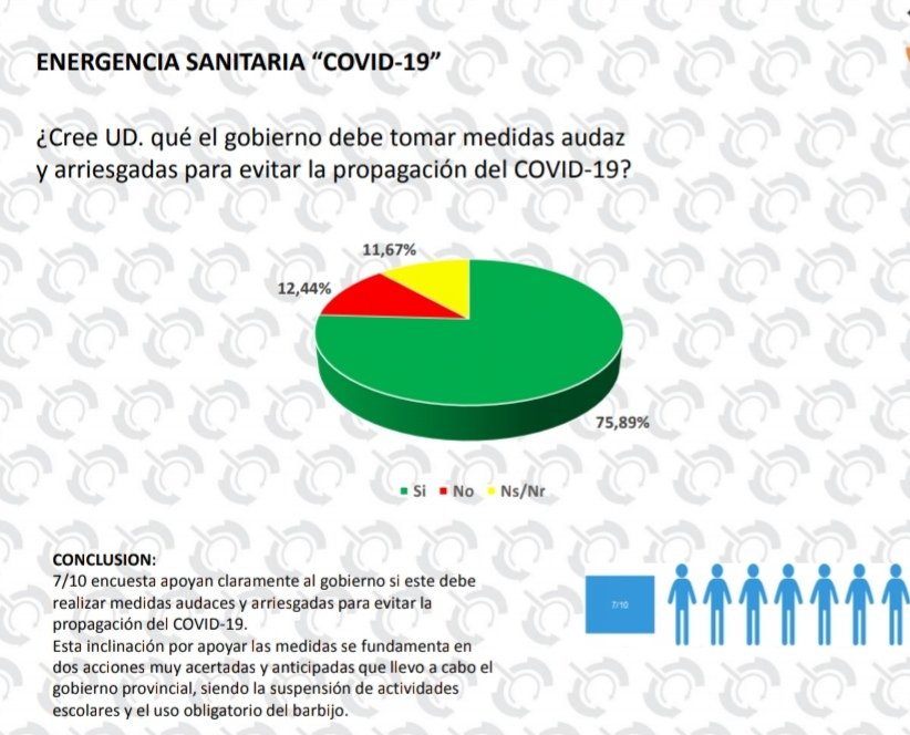 El gobierno exhibe un sondeo de opinión que la ciudadanía apoya la decisión política, aunque hay nerviosismo en el micro y macro centro, como así también cada sector comercial en los barrios capitalinos. En el interior se permitieron flexibilizaciones a la cuarentena.