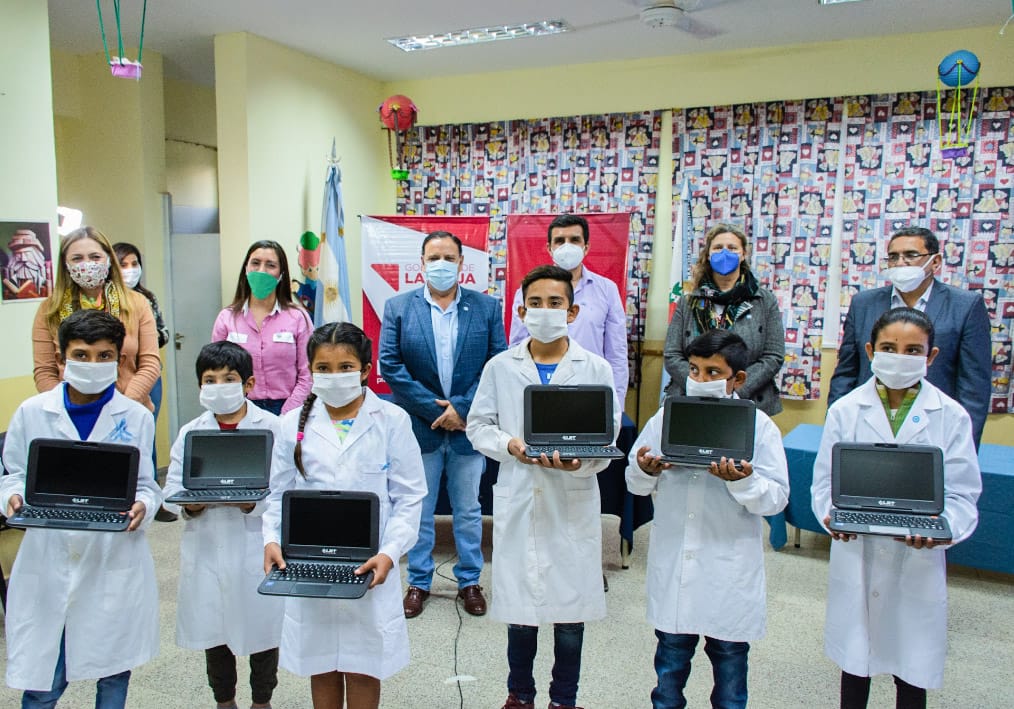 Cabe destacar que durante la entrega se realizó una conexión por videoconferencia con seis departamentos de la provincia oportunidad en la que se firmó un convenio para la entrega de 1.000 computadoras a alumnos que actualmente se encuentren cursando el 4to y 5to grado de 220 escuelas rurales de toda la provincial.