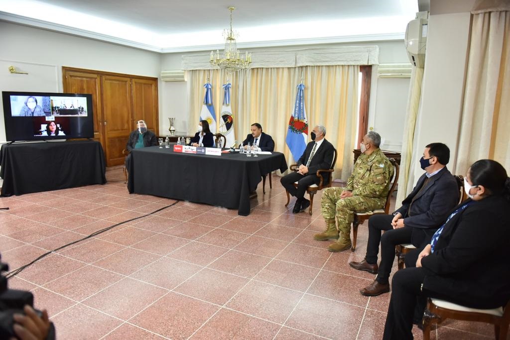 «A los medios de comunicación les pedimos que colaboren, son imprescindibles y necesarios para llevar a la población mensajes positivos y sobre la verdad de lo que estamos padeciendo», dijo el mandatario provincial rodeado por jueces.