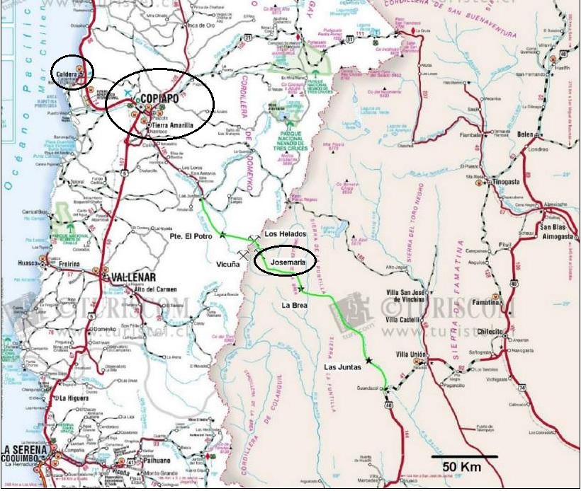 Si bien fuentes de Josemaría Resources consultadas por Diario El Zonda, aseguraron que actualmente se accede a Josemaría solo desde San Juan y a través de La Rioja, la empresa no oculta que el mejor acceso al proyecto sanjuanino es, a través de Copiapó con 4 horas de viaje, mientras que un acceso alternativo desde San Juan, a través de Guadacol, en La Rioja, demanda unas 10 horas, tal cual manifiestan en distintas publicaciones en Internet.