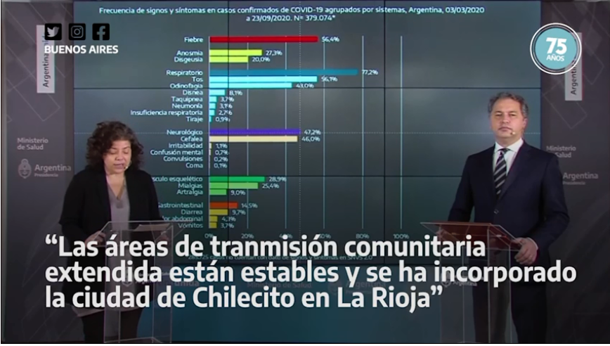 La secretaria de Acceso a la Salud, Carla Vizzotti, dijo que «las áreas de transmisión comunitaria están estables, no se las ha podido interrumpir y se ha incorporado Chilecito en la provincia de La Rioja» por el rebrote de COVID-19.