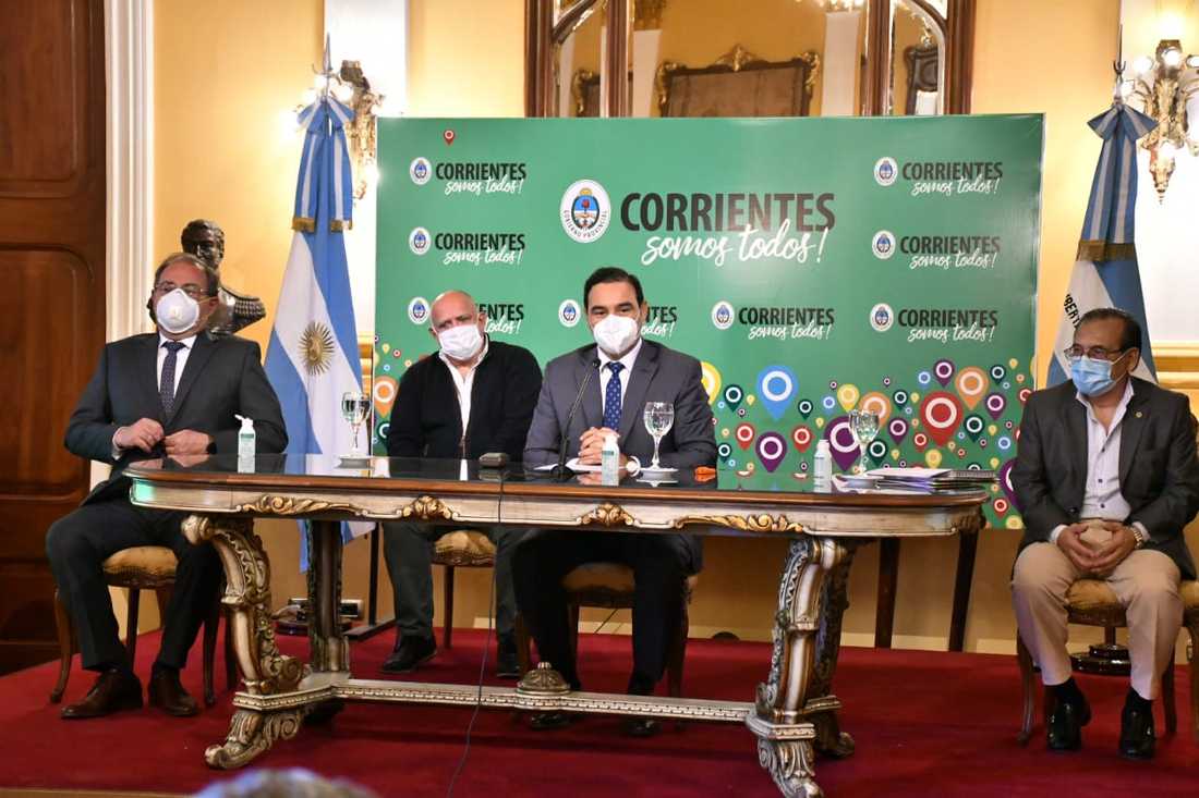 Así se conoció en el Salón Amarillo de Casa de Gobierno correntina, donde el titular del Ejecutivo provincial estuvo acompañado por el ministro de Salud Pública, Ricardo Cardozo; el secretario general de la Gobernación, Carlos Vignolo; el intendente de Capital, Eduardo Tassano y miembros del Comité de Crisis, entre otras presencias.