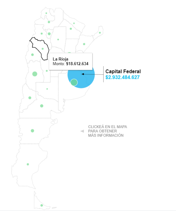 El diario La Nación realizó un mapeo de la distribución de la pauta nacional y detalló cada una de las provincias y hasta las ciudades.