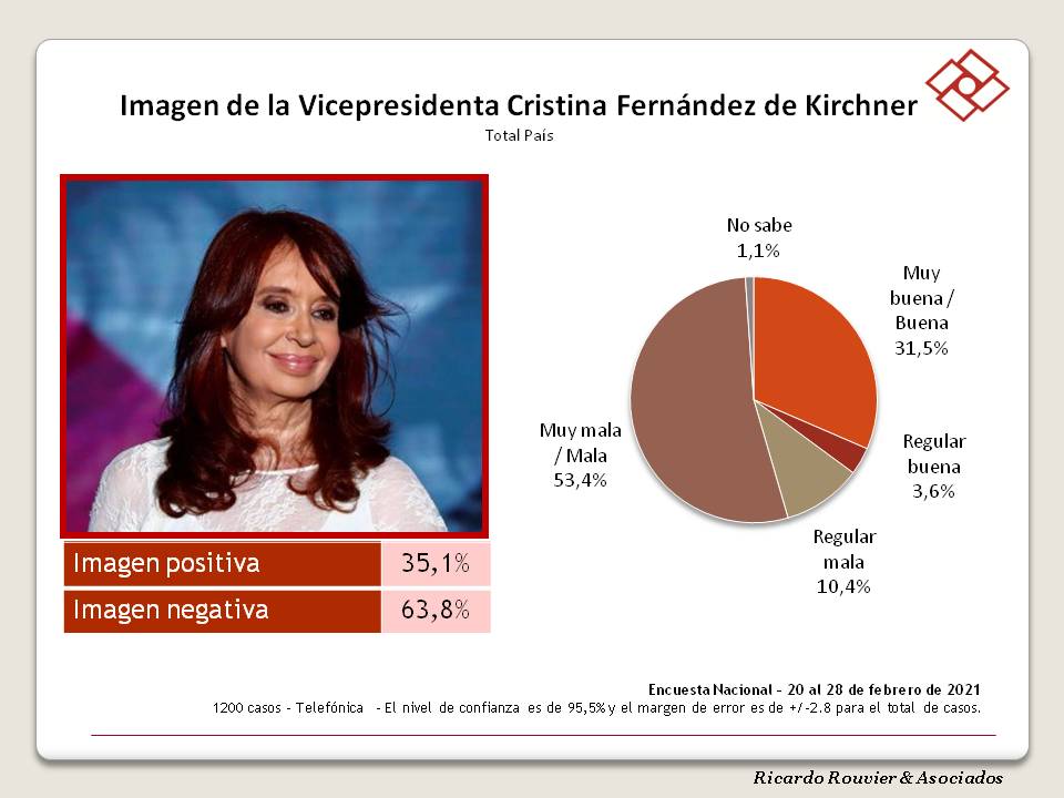 Los políticos peor calificados en este listado son la vicepresidenta Cristina Fernández de Kirchner, quien muestra una caída leve pero sostenida, y el expresidente Mauricio Macri, que se mantiene estable, aunque con la peor calificación.