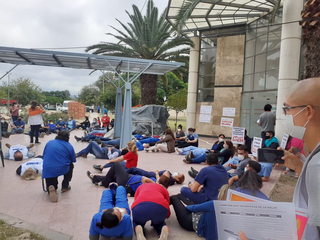 El video fue publicado por la protesta de la Asociación de Profesionales de la Salud (APROSLAR) por la situación sanitaria y las condiciones laborales y salariales.