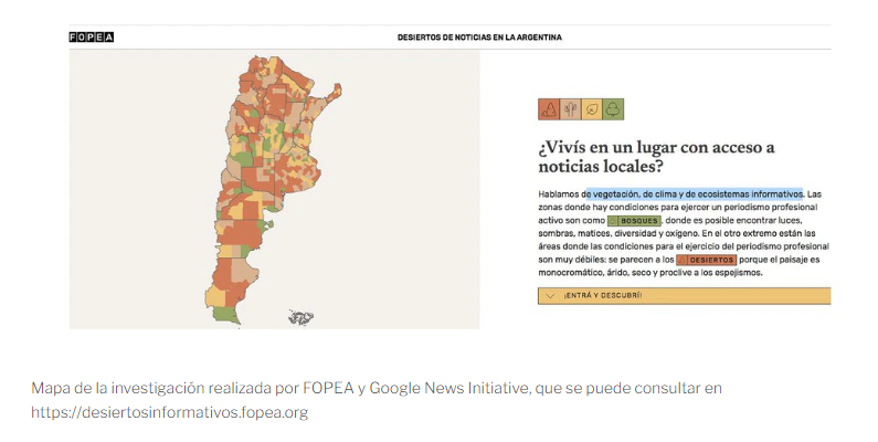 La investigación y el mapa se pueden consultar en https://desiertosinformativos.fopea.org/