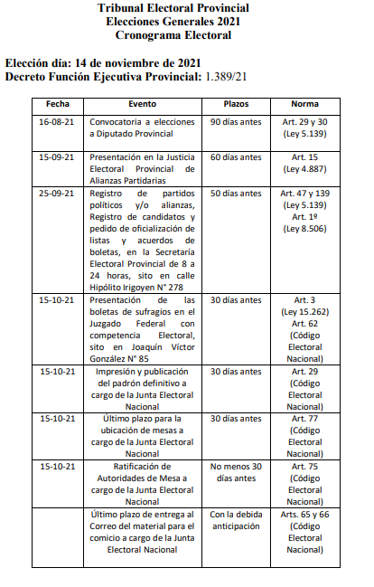 El Tribunal Electoral Provincial recibió la comunicación de la Función Ejecutiva Provincial del Decreto de Convocatoria a Elecciones Provinciales N° 1.389 de fecha 12 de agosto de 2021, convocada para el día 14 de
