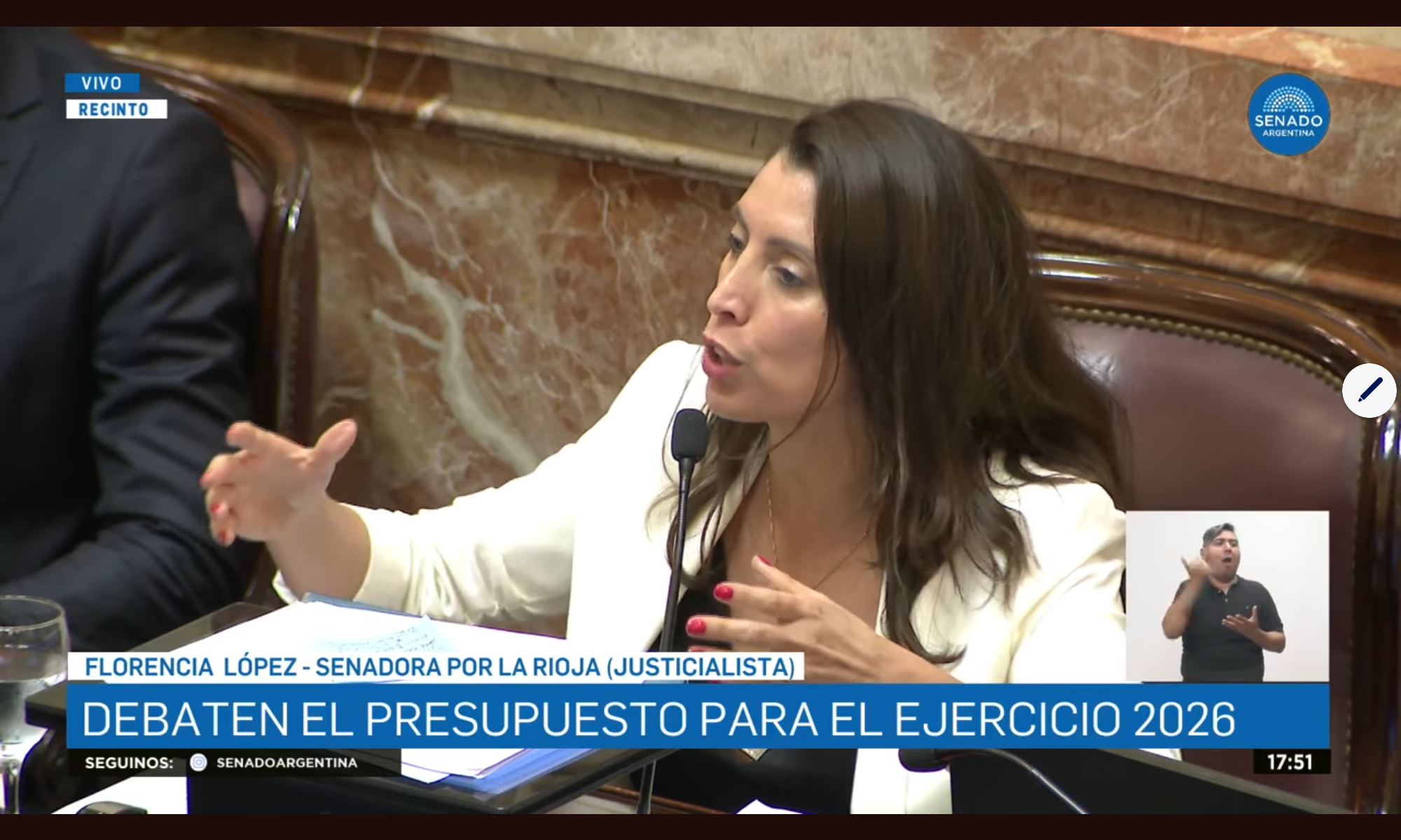 La senadora dirigió su mensaje directamente a la interna política riojana con proyección nacional, apuntando sin nombrarlo explícitamente al presidente de la Cámara de Diputados, Martín Menem. «Esa decisión depende de la firma de un solo riojano, que es el sobrino del expresidente Carlos Menem. Que tenga la decisión política, una vez en la historia, de favorecer a sus coprovincianos», desafió.