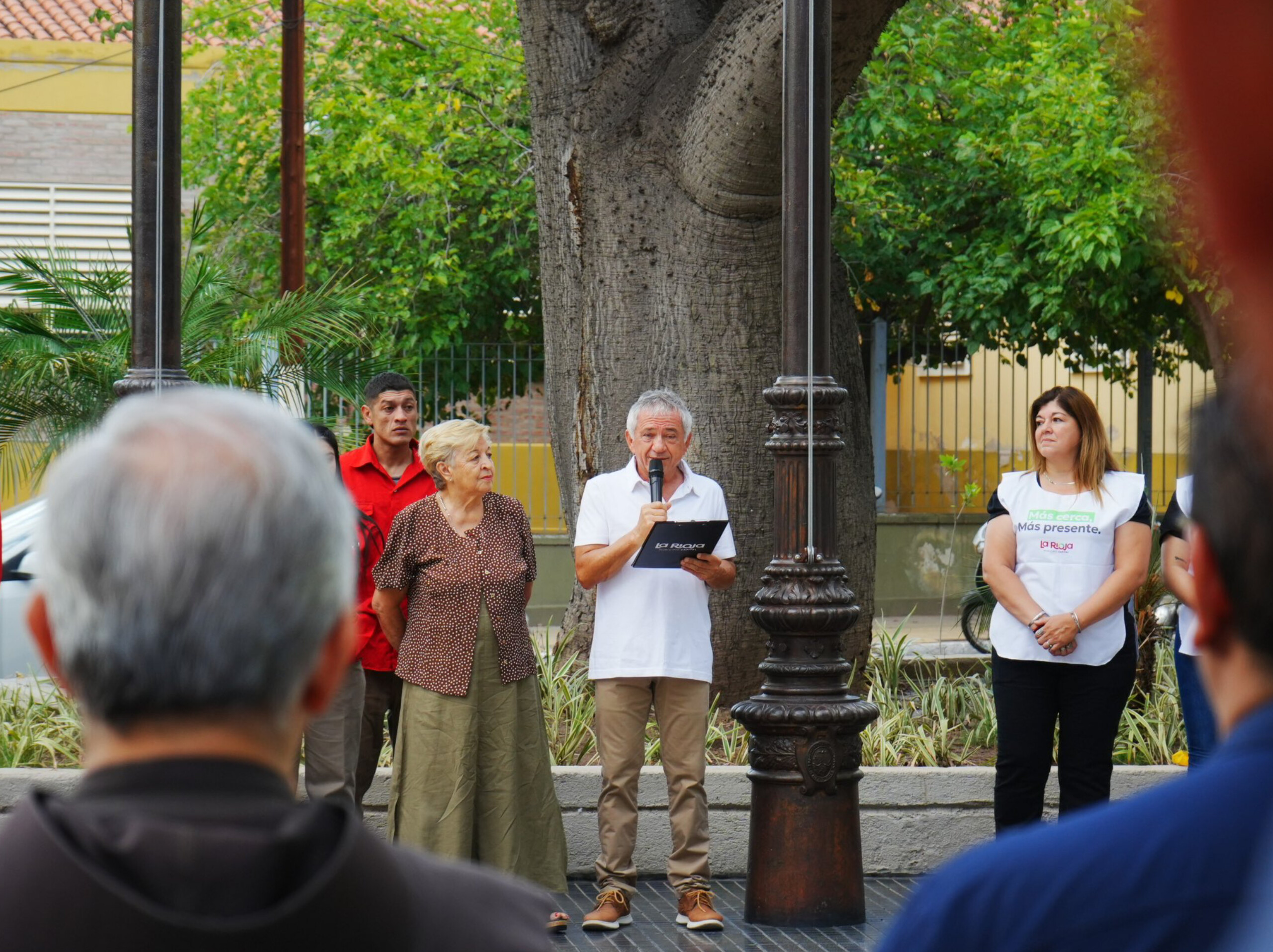El intendente eligió zonas demográficamente sensibles para su aparición pública. A través del programa «Municipio en tu Barrio», Molina se mostró rodeado de vecinos en los barrios Argentino, Evita y Vial, bastiones donde la crisis económica golpea con mayor fuerza. Allí, encabezó el izamiento de banderas, pero no lo hizo solo: sumó a la foto al rector de la Iglesia San Francisco, Fray Julio César Bunader.